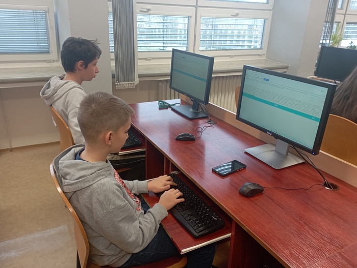 V kategorii do 12 let se výborně umístila Pavlína Musiálková (2.B), která z 53 soutěžících obsadila 13. místo s 218,2 úhozů za minutu.