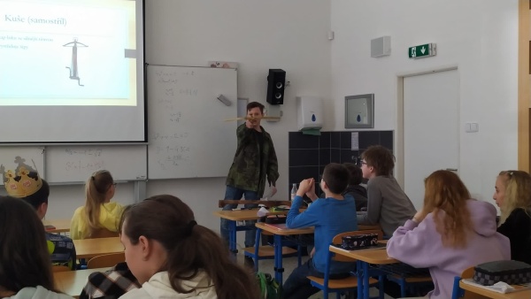Období husitských válek je pro žáky většinou zajímavé a nejinak tomu bylo i v 2.B. Proto není divu, že byl o prezentování husitských zbraní velký zájem.